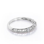 Calm your soul with this Victorian Style 0.10 TCW Milgrain Wedding Band. Hand-cut with deftness into a lovely shape round cut by our lapidary expertise, this splendid Moissanite wedding band for women integrates total 0.10 carat. For those looking for something a little out of the ordinary, this affordable Moissanite wedding band is an excellent choice. this Moissanite wedding band is magnificent in its brilliance and clarity and will be an unmistakable addition to any jewelry collection. Beautiful and affordable, this women's Moissanite band is a great choice for any woman's jewelry collection. Our affordable Moissanite wedding band, the birthstone ring for the fourth month, represents riches and extravagance and would make an excellent gift for friends or your better half. this Moissanite band can be customized to your own choice of metal colors: white gold, rose gold, black gold, or yellow gold. Your love story will be complete with this Moissanite wedding ring band.