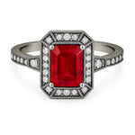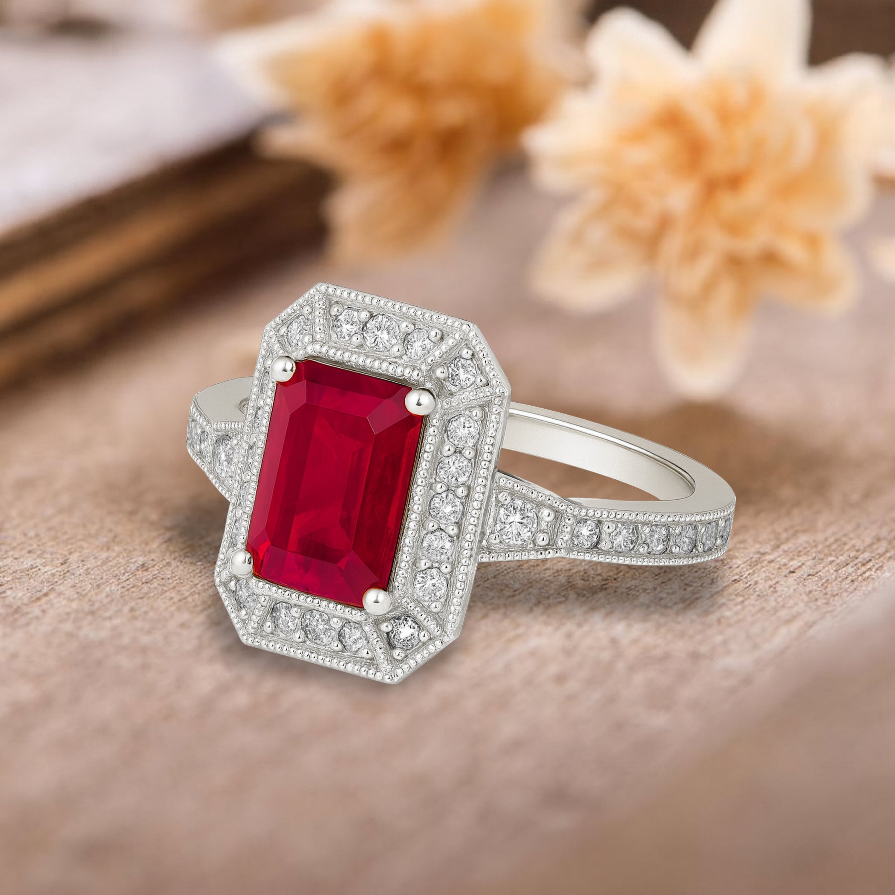 Vintage 1.35 Ct Emerald Cut Lab Ruby Engagement Ring