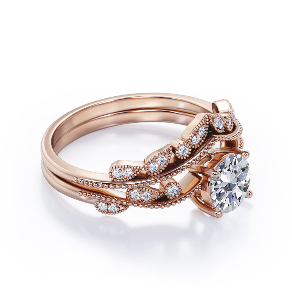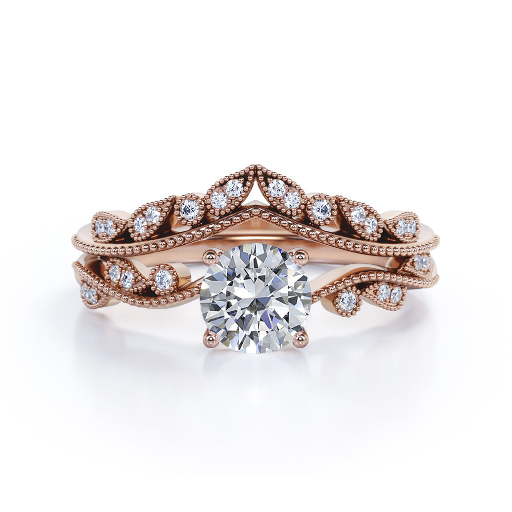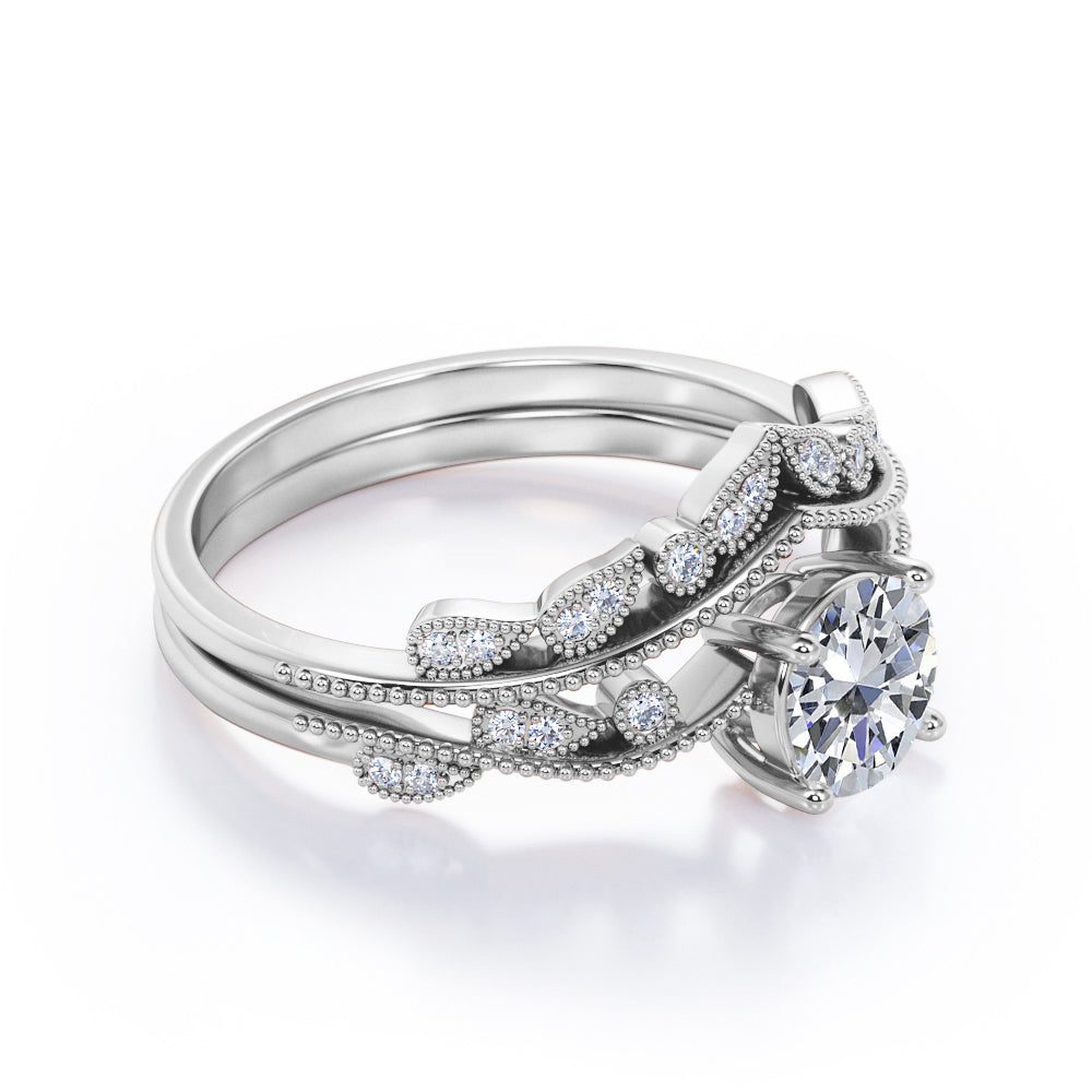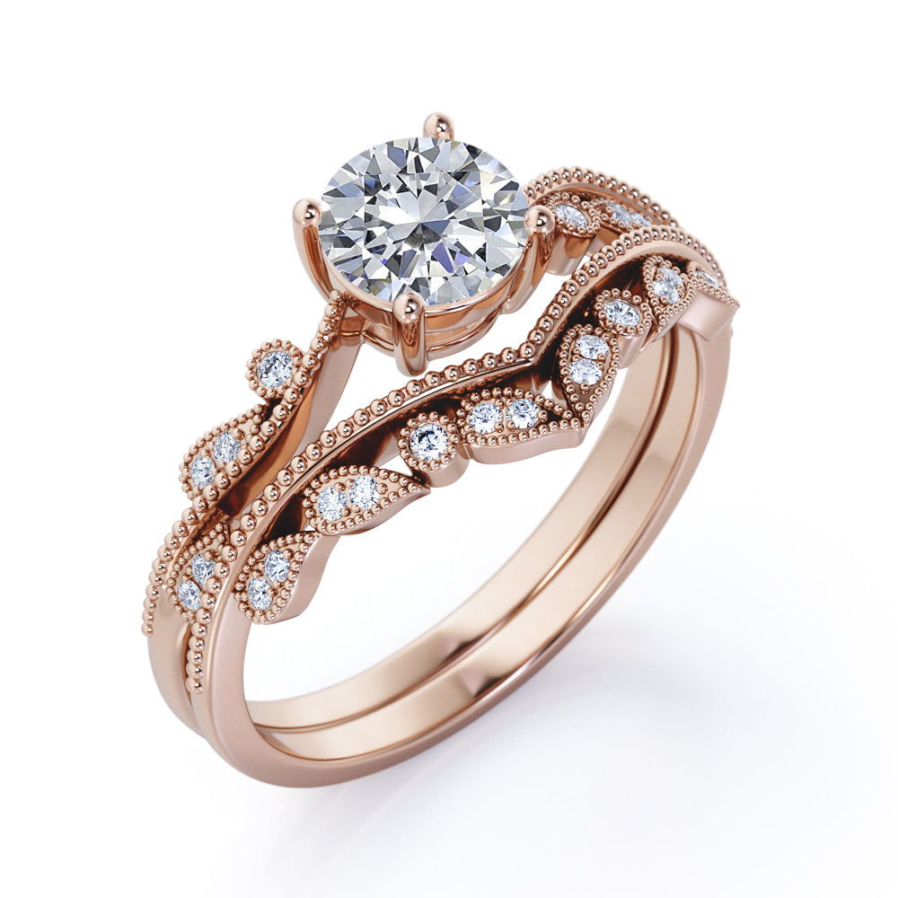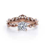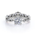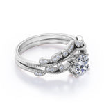 Vintage 1.5 Carat Round Cut Moissanite Bridal Set