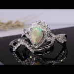 Antique 1.75 Ct Pear Cut Lab Created Opal Bridal Set