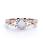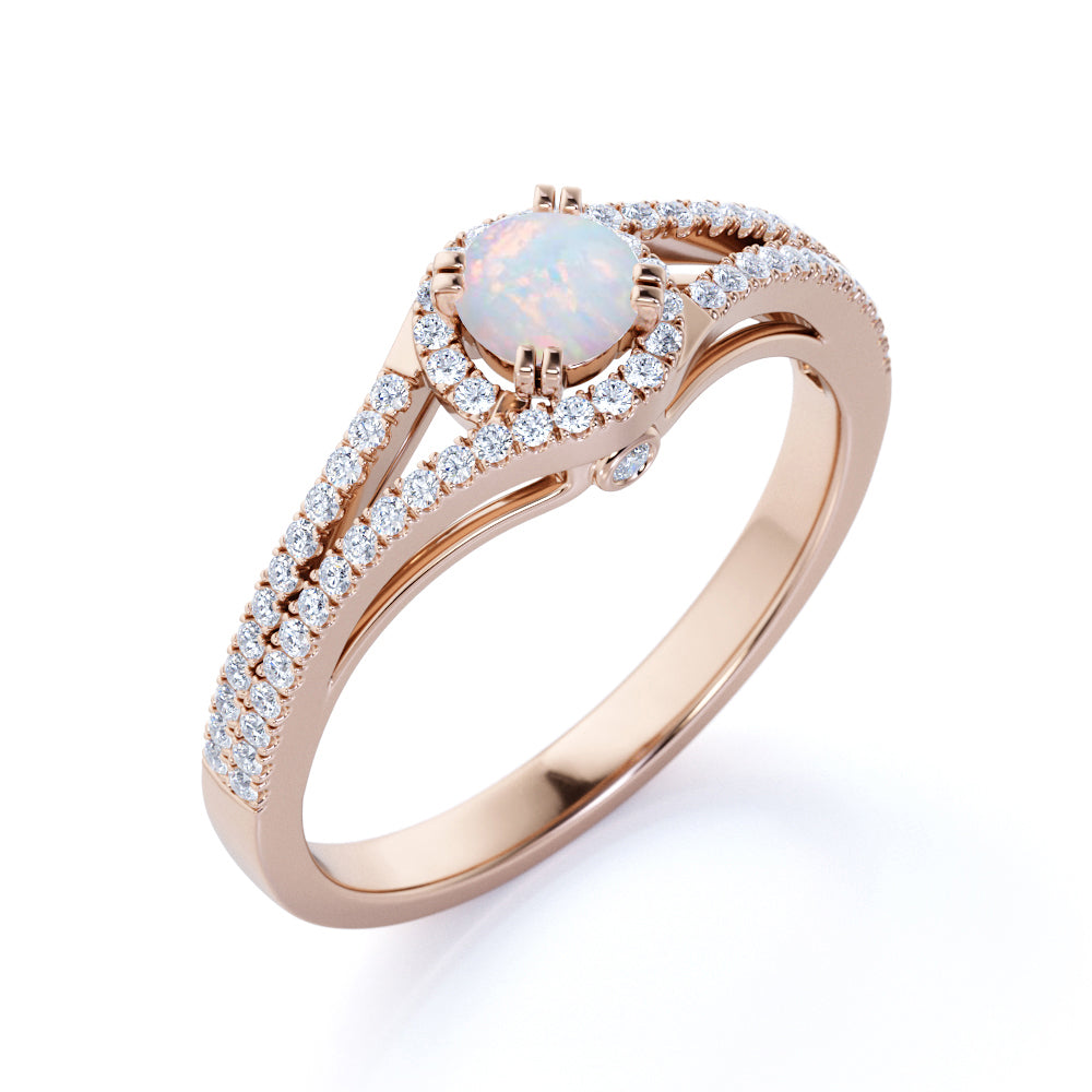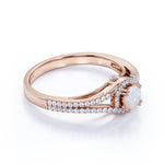 Vintage .83 ct Round Blue Fire Opal and Moissanite Birthstone Promise Ring in 18K Rose Gold over Silver