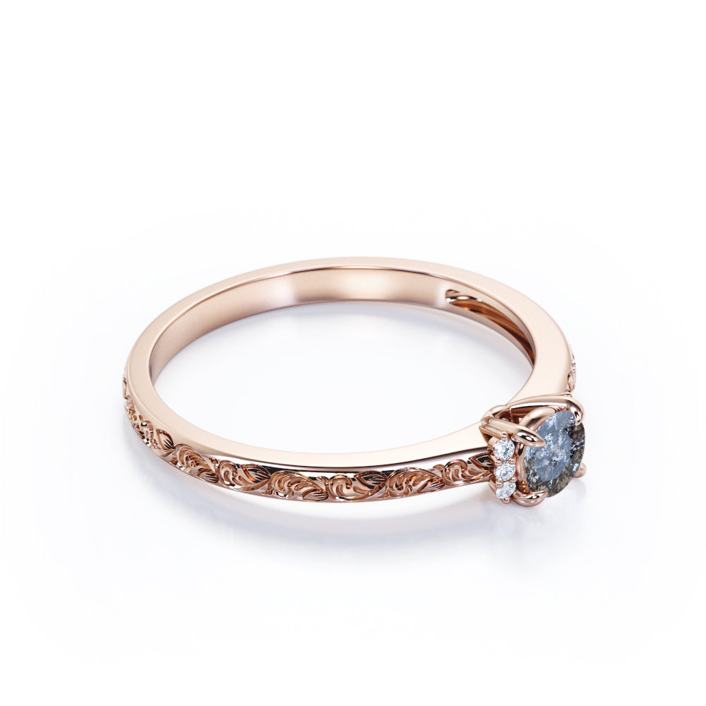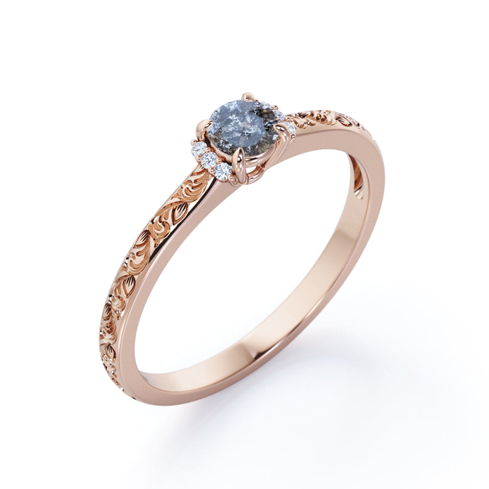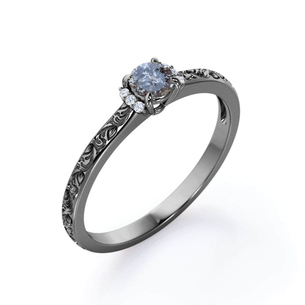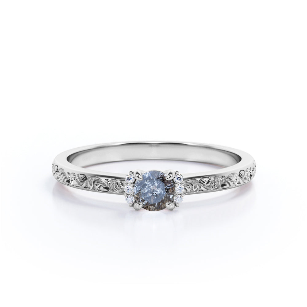 0.75 Ct Round Salt and Pepper Diamond Art Deco Engagement Ring