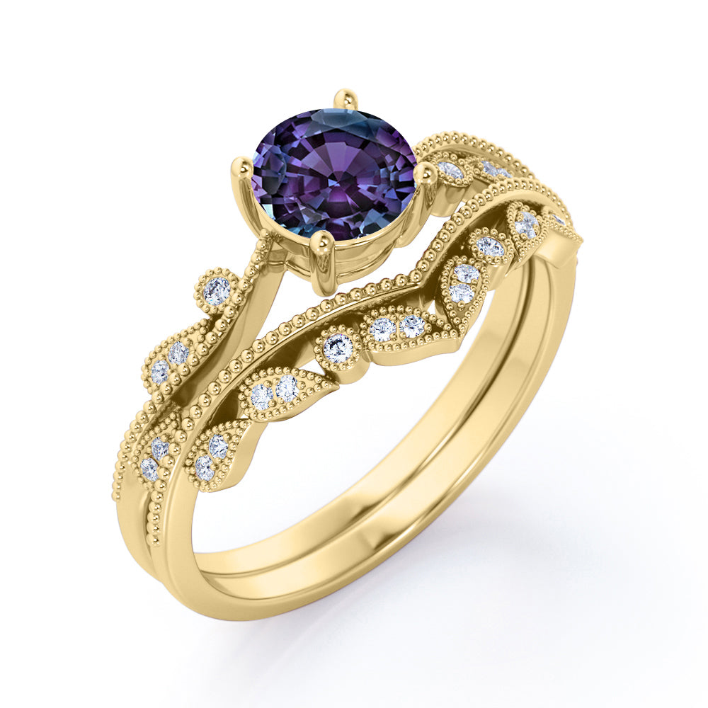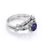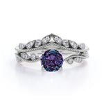 Vintage 1.50 Ct Round Lab Alexandrite Bridal Set