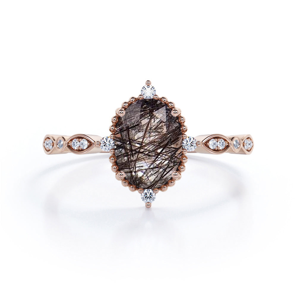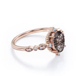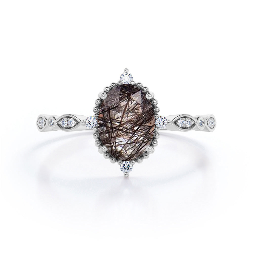 Vintage Bezel 1.25 ct Oval Black Rutilated Quartz Engagement Ring