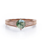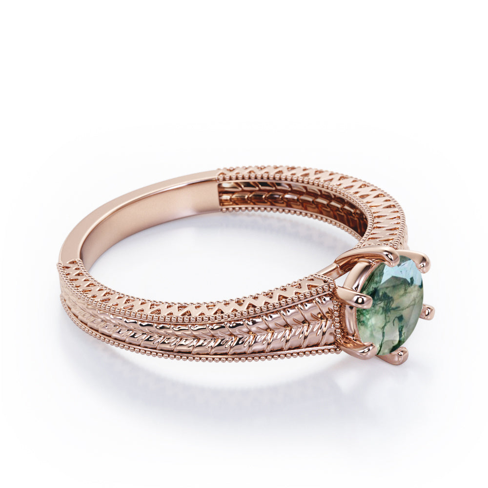 Vintage Bowtie Filigree 1 carat Round Moss Green Agate Solitaire Engagement Ring in Rose Gold