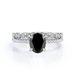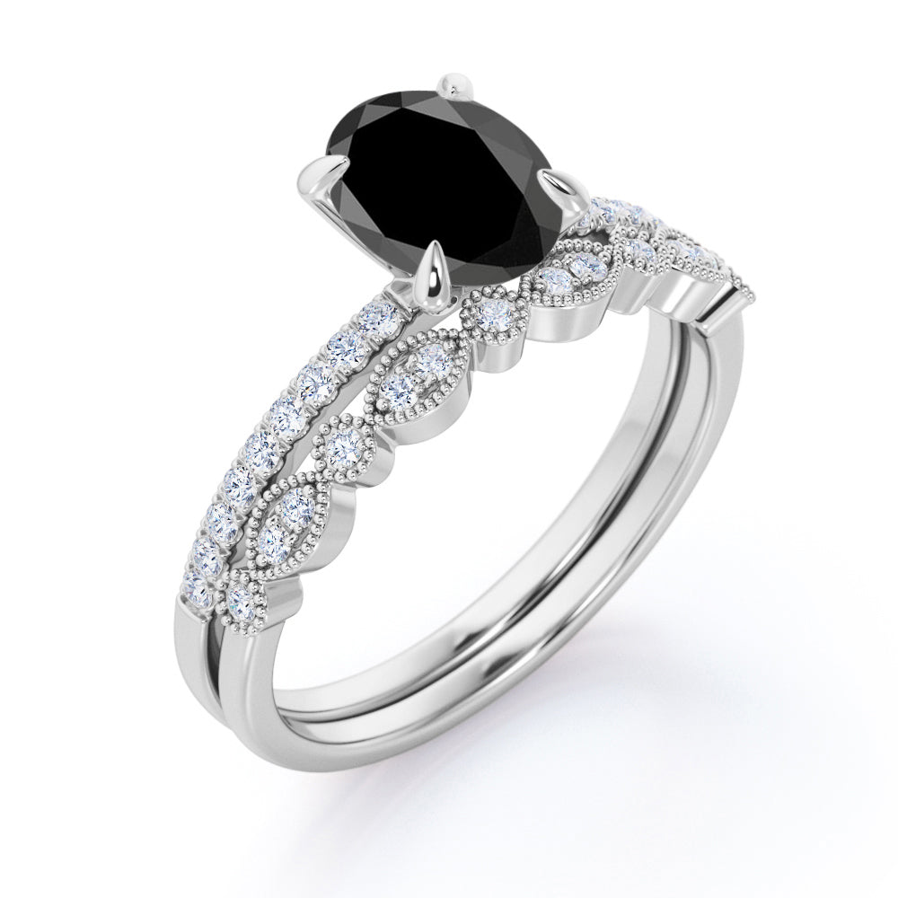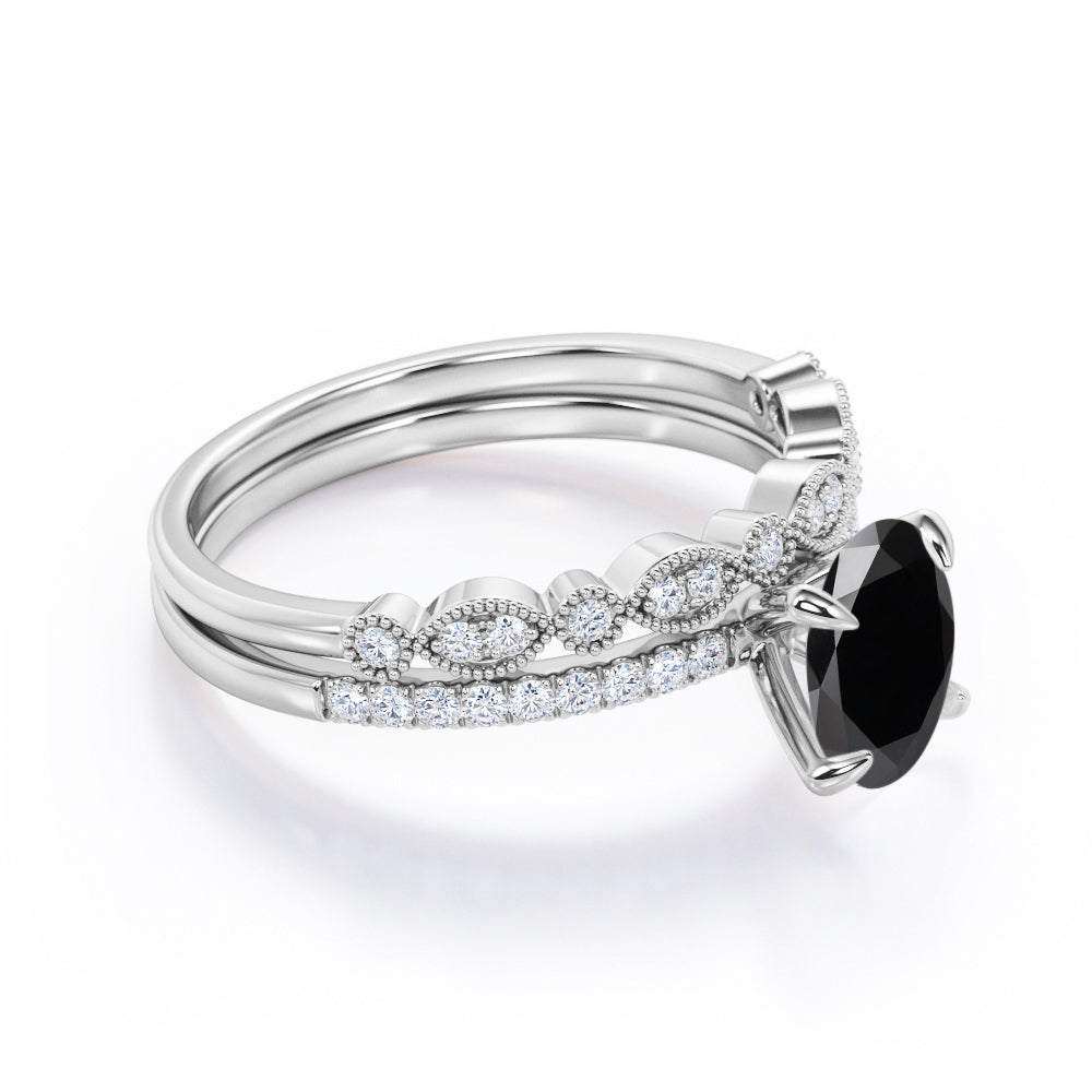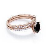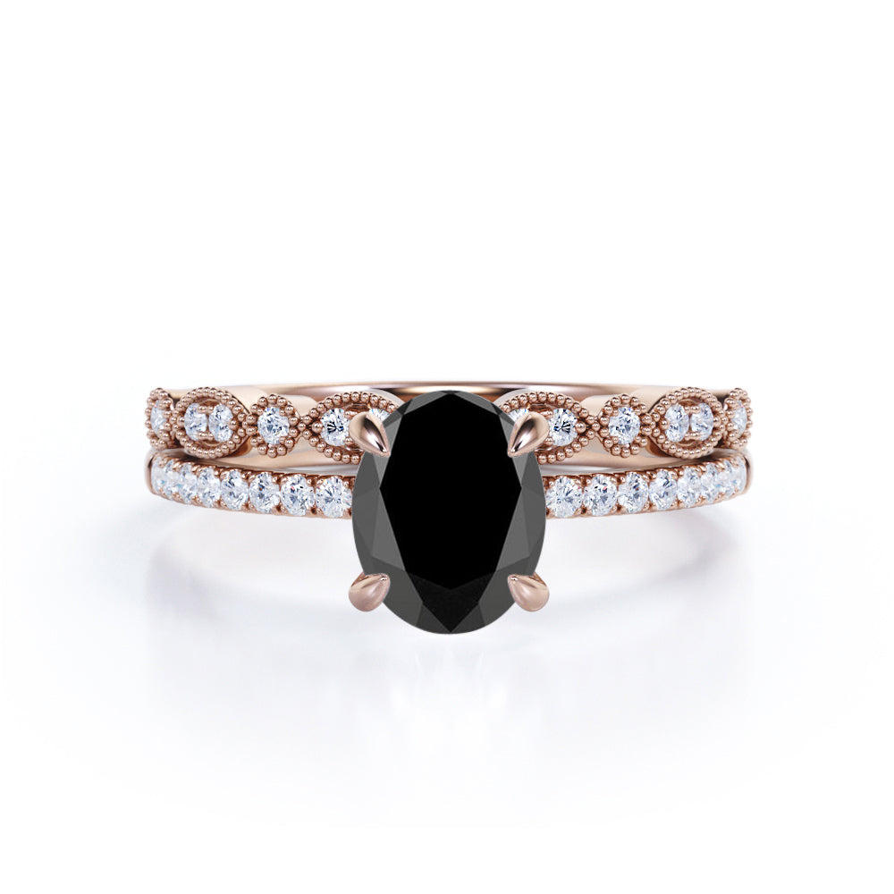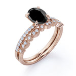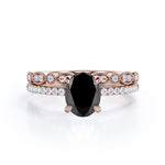 Vintage design 1.50 Carat Oval cut Lab Black Diamond Wedding Set for Women in Rose Gold