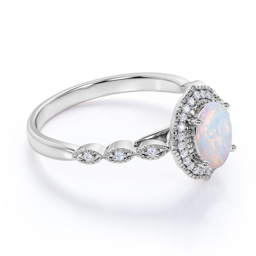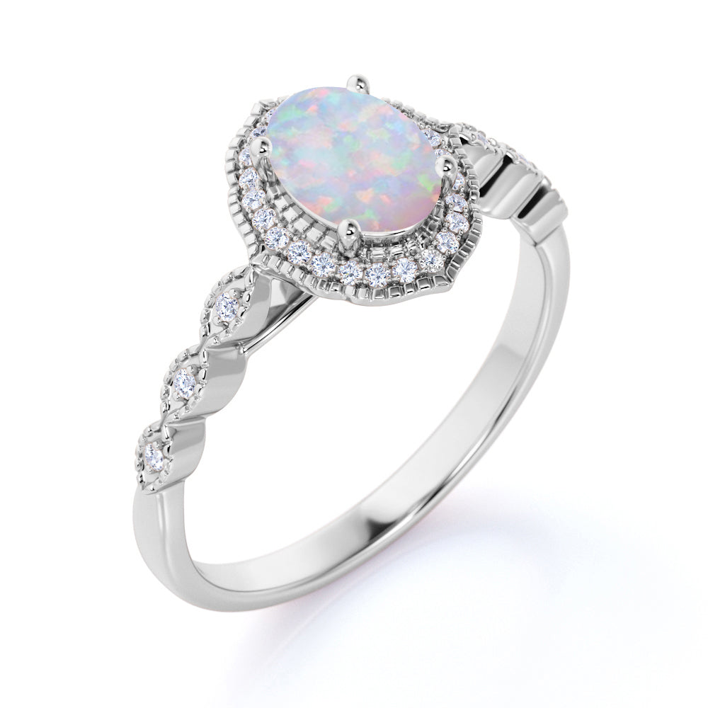 1.75 Ct Oval Cut Lab Created Opal Vintage Engagement Ring