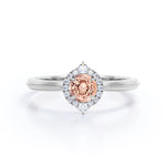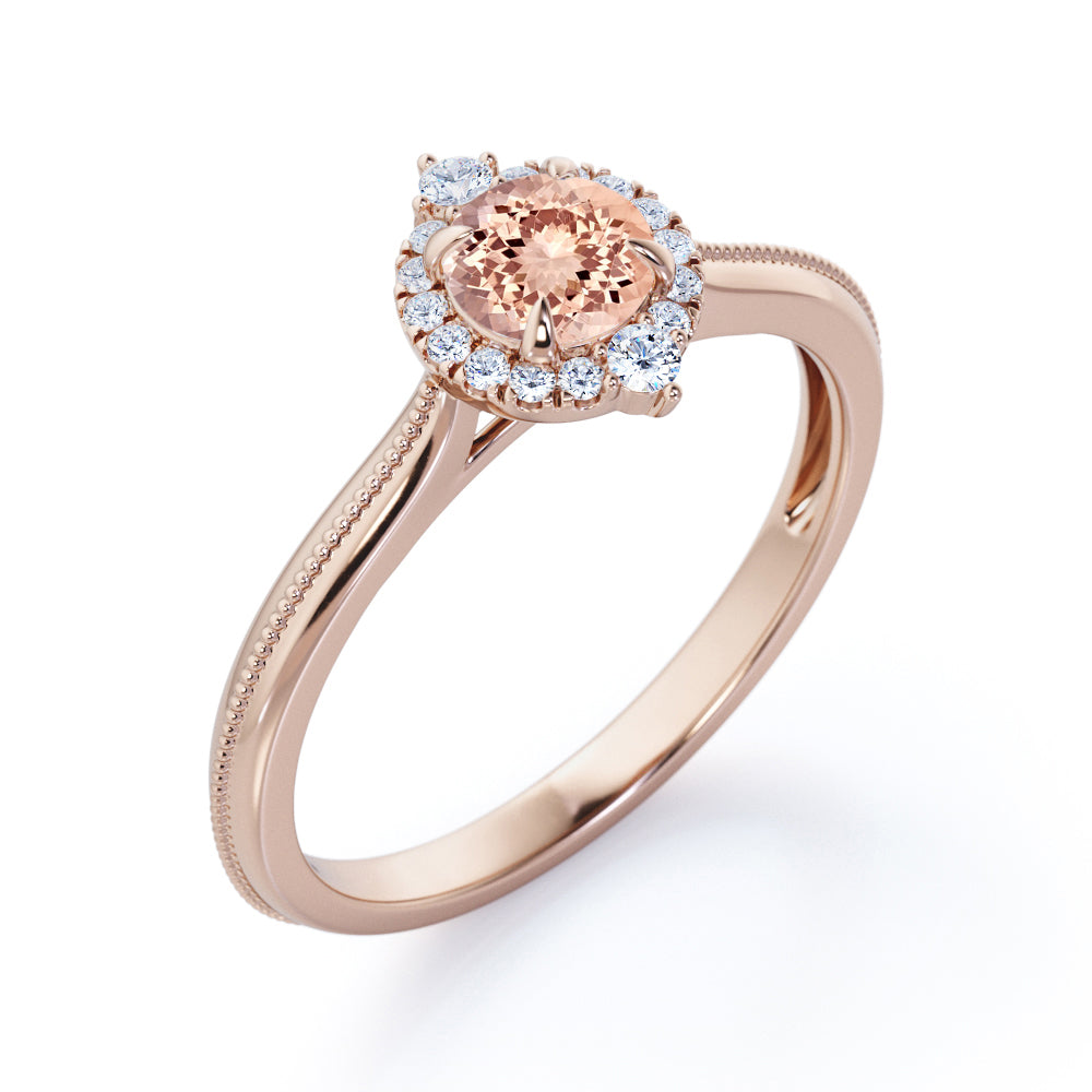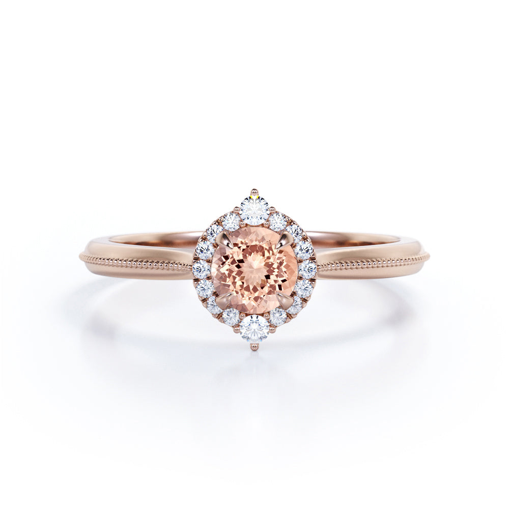 Vintage Halo 0.65 carat Round Morganite and Moissanite Engagement Ring in Rose Gold