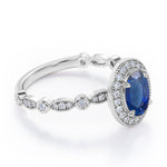 Vintage 1.35 Ct Oval Cut Lab Sapphire Engagement Ring