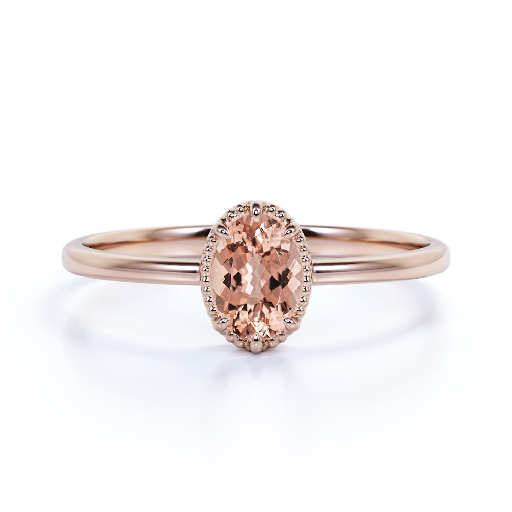 Vintage Inspired 1.50 Carat Oval Pink Salmon Morganite and Classic 6 Prong Engagement Ring in Rose Gold
