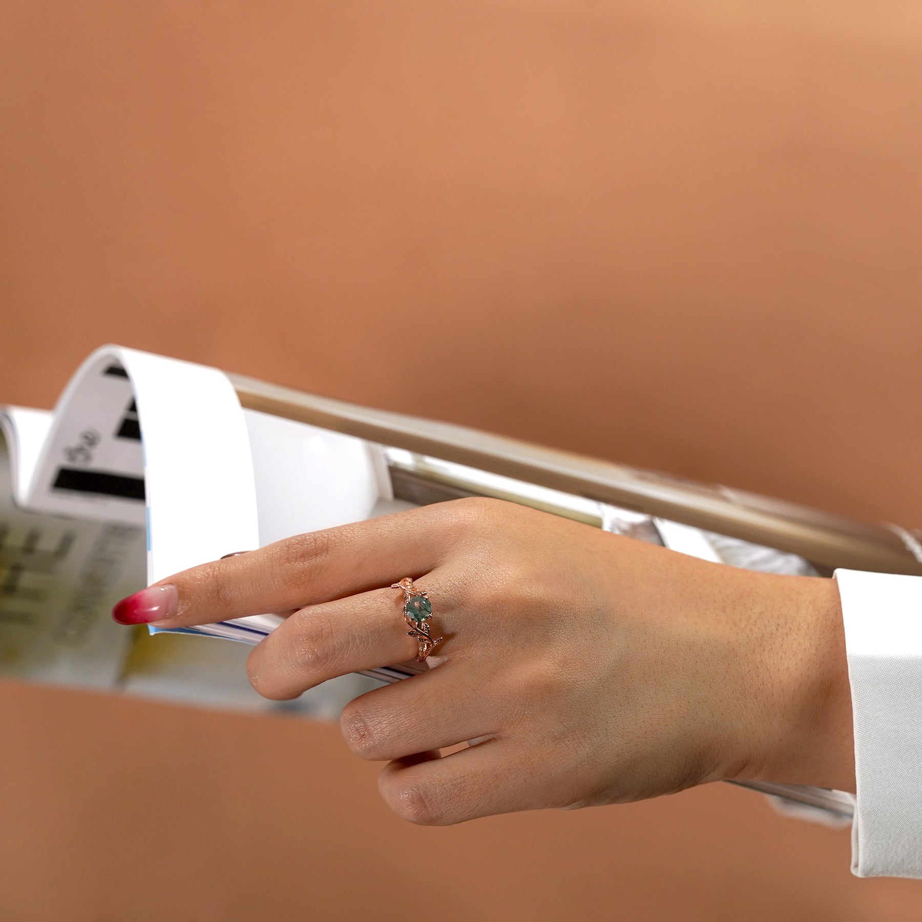 Paint your love story with this Vintage Leaf Design 1 Carat Round Cut Natural Transparent Dendritic Moss Green Agate Solitaire Engagement Ring in Rose Gold for Women. This nature-inspired leaf design milky white moss green Agate engagement ring features 1 carat round cut real moss green agate. This vintage filigree engagement ring can be customized to either 10k, 14K and Gold over Silver and either Black Gold, Rose Gold, White Gold or Yellow Gold. Also, as your satisfaction is our most priority, we will do our best to have your handmade jewelry be carefully and beautifully crafted by our expert jewelers. The order also comes with a 30-day full refund policy. This green colored minerals with banded inclusions ring will surely be a perfect gift for your special someone. It is well-known for spiritual and healing power. Encourage trust and hope with this real green Agate ring that shows a variety of white with green inclusions that resembles moss. The unique green color in its patterns will surely complement every style of its wearer. With its long history and many oral traditions around the world, this delicate druzy moss green Agate ring is sure to be eye-catching and bring all eyes on you. This ring is available at a very affordable price and available in both silver and gold ring. It perfectly fit those who are looking for a very unique ring that no two rings are alike. Being considered a very lucky omen, this natural banded moss green Agate ring encourages the gradual growth of what you currently need most in your life. Those who has a penchant for vintage and flawless ring would completely fall in love with this ring. It is the perfect match for those who are looking for a remarkable gemstone rings as moss green Agate embodies their own unique intriguing patterns and uplifting meaning.