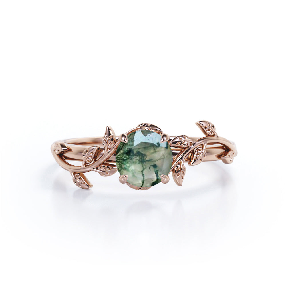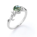 Nature Inspired 1 Ct Round Cut Green Moss Agate Engagement Ring