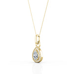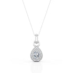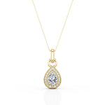 Vintage Solitaire 1.10 Carat Pear Cut Certified Moissanite and Diamond Surface Prong Pave Pendant Necklace in Yellow Gold