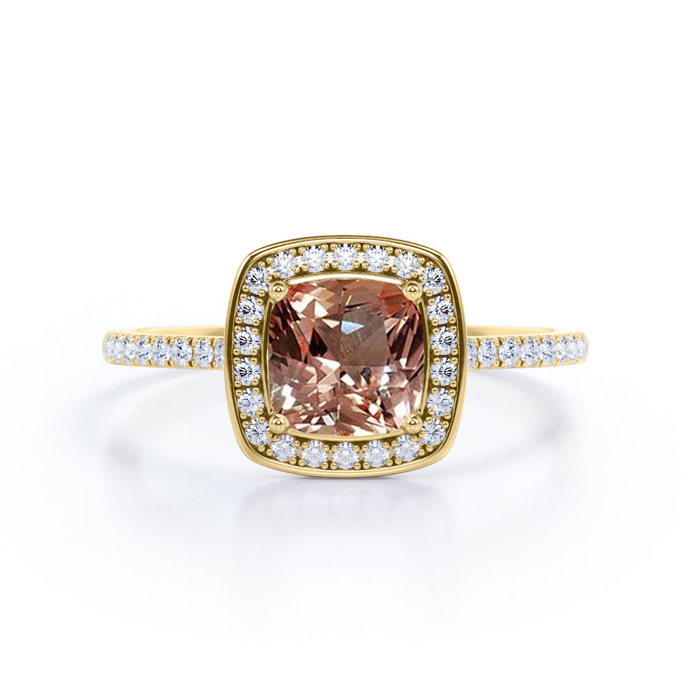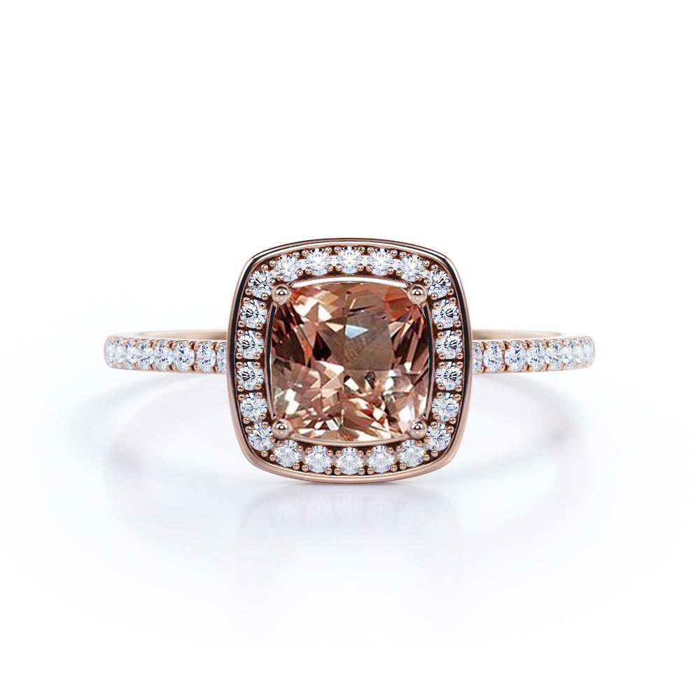 Vintage Style 1.50 Carat Cushion Cut Peach Pink Morganite Solitaire Engagement Ring in Rose Gold