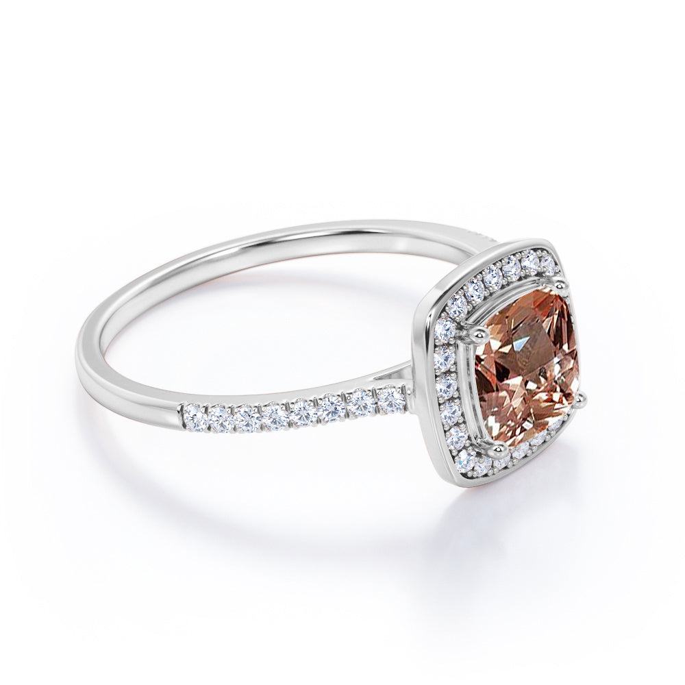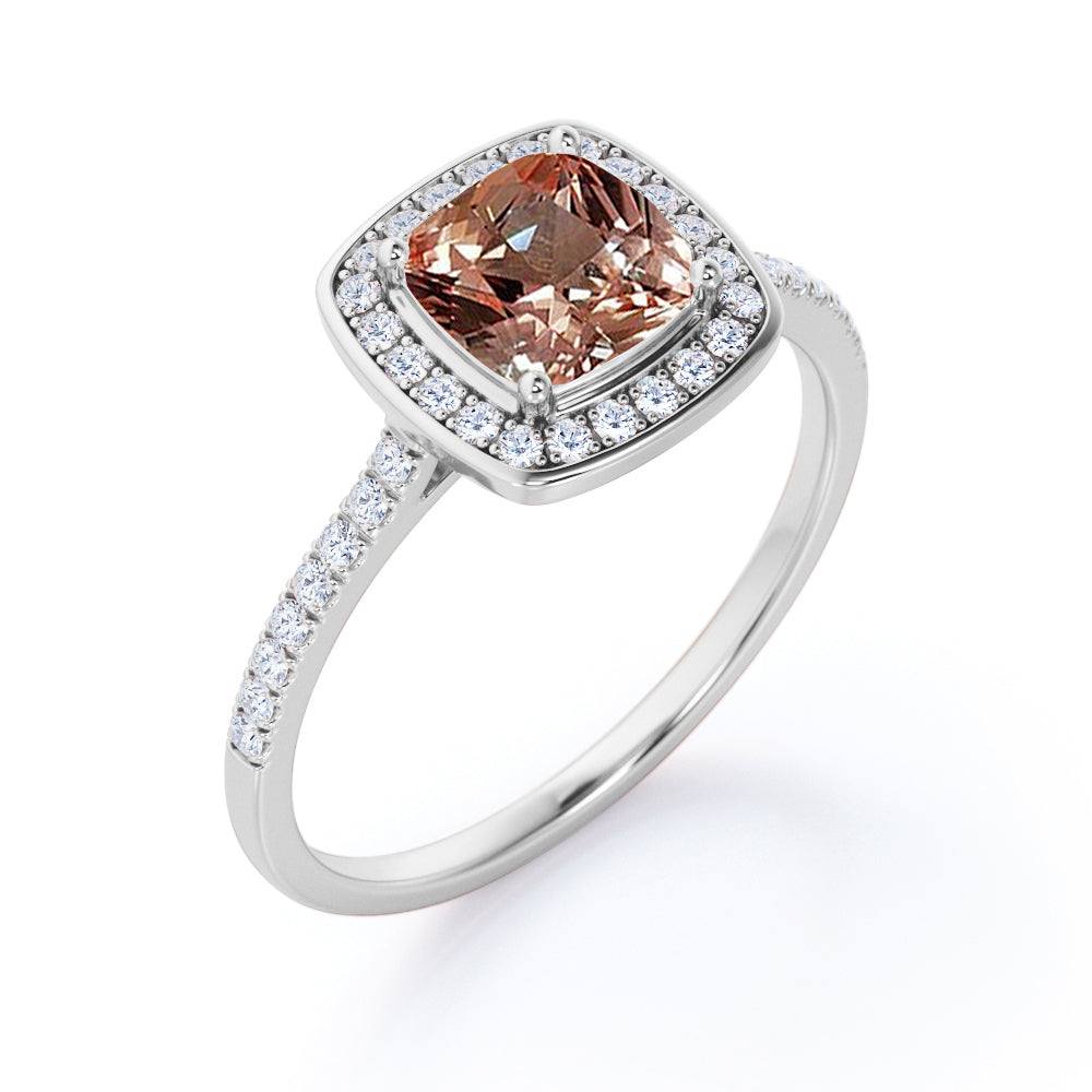 This morganite ring represents your love, affection and towards an infinite life together. This morganite is very unique since we can customized this to your preferred style or cut. Either in cushion, square, princess, pear, teardrop, round brilliant, oval, marquise, heart, trilliant, trillion, emerald, radiant, asscher or any other cut that you wish to receive. This morganite ring features an approximately 1.50 carat cushion cut genuine morganite.