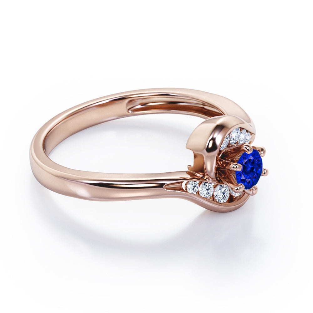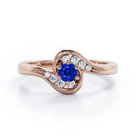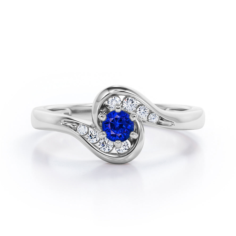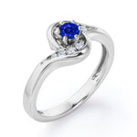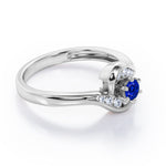 Whirly Gemstone 0.55 carat Round Blue Sapphire and Moissanites Artistic Engagement Ring in White Gold